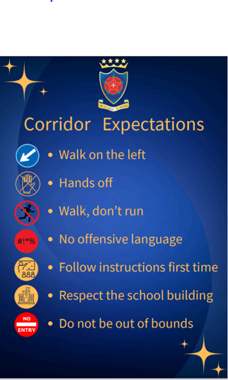 Each morning, students cross the Blue Line, where staff welcome them and check that they are ready for the day. This includes uniform checks, equipment checks and ensuring mobile phones are switched off. This routine supports high expectations and helps students start the day positively.